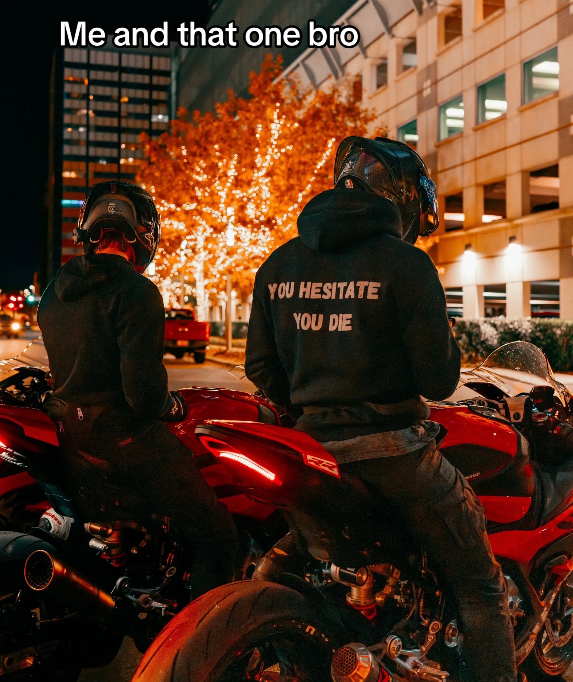 This hoodie was made for those who don’t second-guess — they act. “You Hesitate You Die” isn’t just a phrase; it’s a mindset. Whether you’re carving corners, chasing goals, or facing life head-on, hesitation isn’t in your vocabulary.